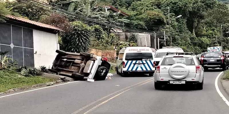 Pasadas la 1:00 pm se reportó el vuelco de un auto liviano en San Bosco de Mora, cerca de la terminal de buses, sobre la ruta 239.