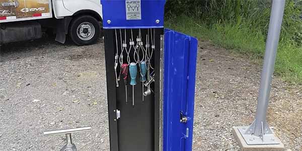 Estas estaciones de apoyo de ciclismo cuentan con un kit de herramientas para mecánica básica, un inflador y un espacio para descanso e hidratación.