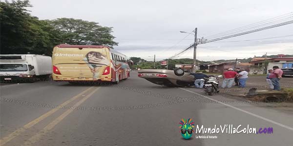 Pasadas las 8:15 am se presentó el vuelco de un vehículo liviano en la recta de Brasil de Mora.
