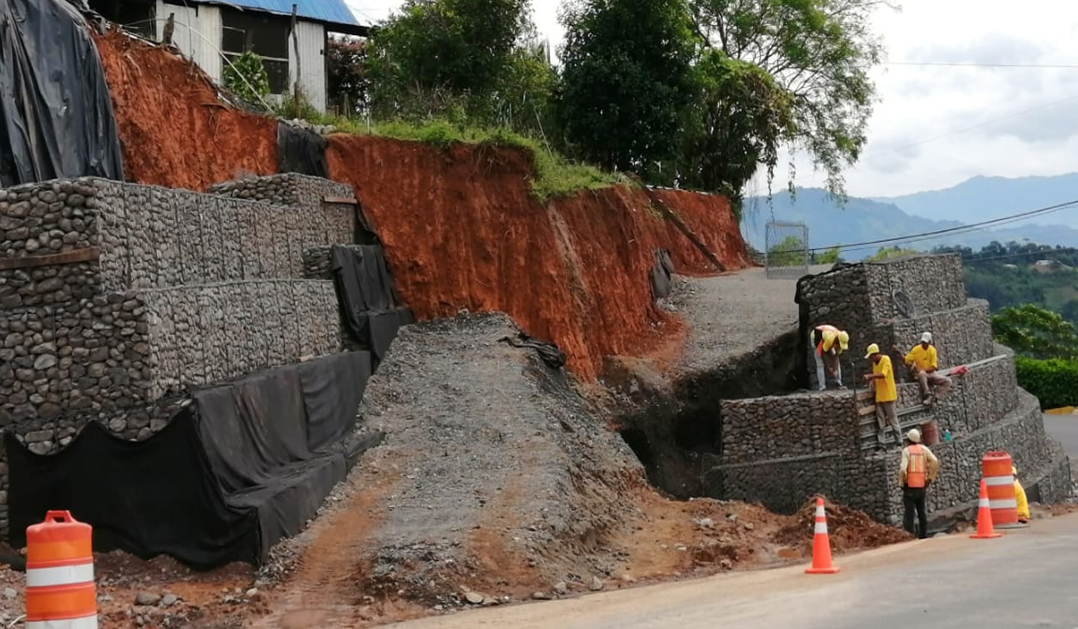 Según  explicaron  en  la  Gerencia  de  Conservación  de  Vías  y  Puentes,  del  Consejo Nacional de Vialidad, se trabaja en detalles finales de los muros de gaviones sobre la ruta  317  y  sobre  la  ruta  239,  al  tiempo  que  se  hacen  labores  de  tubería  y  cunetas sobre la ruta 316.En  el  caso  de  las  tuberías,  pozos  de  registro,  cordón  y  cunetas,  la  inversión  es  por ¢25  millones,  mientras  que  en  el  muro  de  la  ruta317,  se  destinaron  ¢165  millones, con el propósito de poder reconstruir la carretera, luego de un hundimiento.