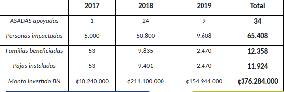 El Banco Nacional es un precursor del desarrollo económico del país y un aliado estratégico de las personas así como de las comunidades, de esta manera, aportó presupuesto a modo de capital semilla y de trabajo, para la compra de tuberías, tanques, equipo y materiales en el entendido que tienden a ser inversiones elevadas de asumir por parte de las ASADAS.