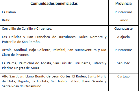 Entre las comunidades en todo el territorio nacional que se han visto beneficiadas están las siguientes:
