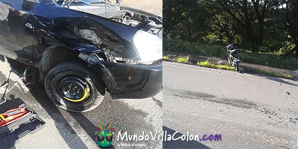 Pasadas las 7:05 se presentó la primera colisión entre un vehículo liviano y una motocicleta, a pesar del fuerte golpe solo se reportaron golpes leves y pérdidas materiales.